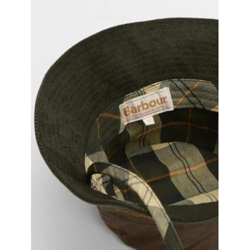 Inspired by the classic bucket hat, the Barbour Brackley waxed hat is ideal for both men and women. Crafted from waxed cotton with a contrasting color block design, it features an oversized brim and fine corduroy trim. Finished with a tartan lining and tartan cords, it pays homage to the classic Barbour heritage.