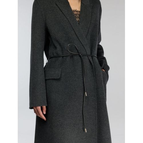 Double wool coat. Faux leather belt included. Flap pockets. Regular fit.