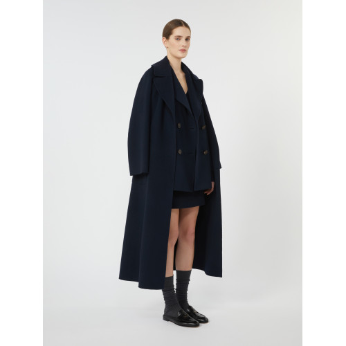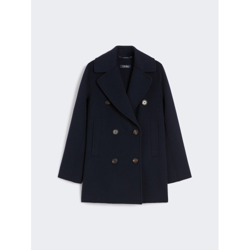 Double-breasted, hip-length pea coat in double wool drap, with a slightly flared fit. Wide lapel collar and lined sleeves.