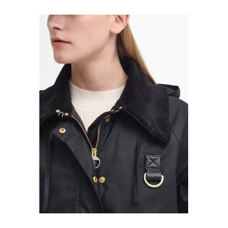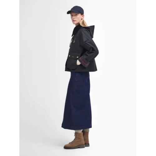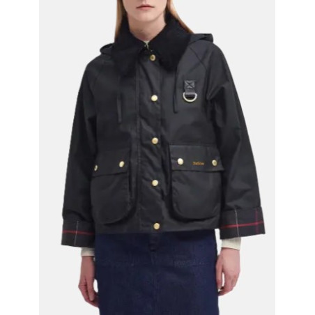 Inspired by the Spey waxed jacket, one of the most beloved archive styles, the Barbour Reighton Spey waxed jacket features all the classic elements of the original, such as the D-ring detail on the chest and fixed hood. An oversized, fine-ribbed collar and tartan trim on the cuffs complete the new style.