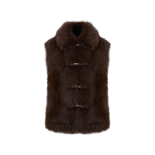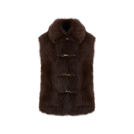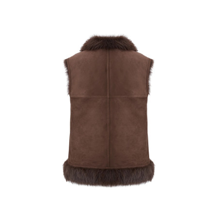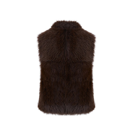 Reversible faux fur gilet: fur effect and suede effect with fur trim