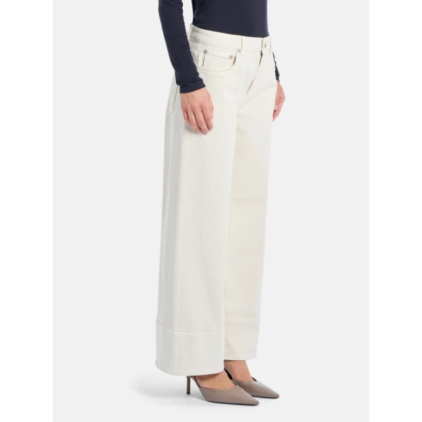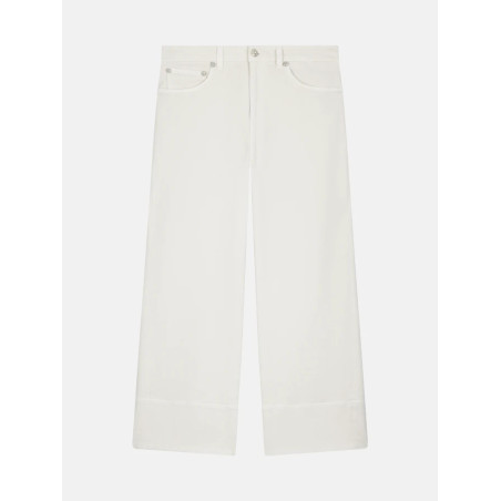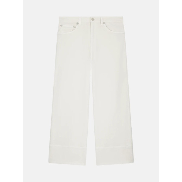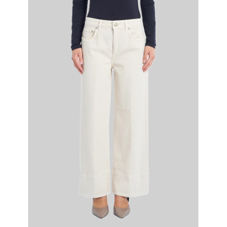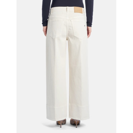 Ruby jeans, five-pocket, wide-leg fit, regular waist, fixed cuff. Jeweled accessories. Bull stretch in Bluesign Approved 11 1/2 oz. Garment dyed. Dondup logo. Made in Italy.
