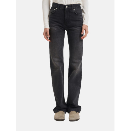5-pocket, straight-leg jeans in 100% washed black cotton denim. Mid-rise.