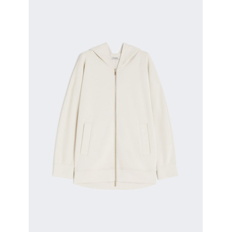 Oversized cotton jersey sweatshirt with kimono sleeves. Full-zip front, side welt pockets, and embroidered logo on the left pocket.