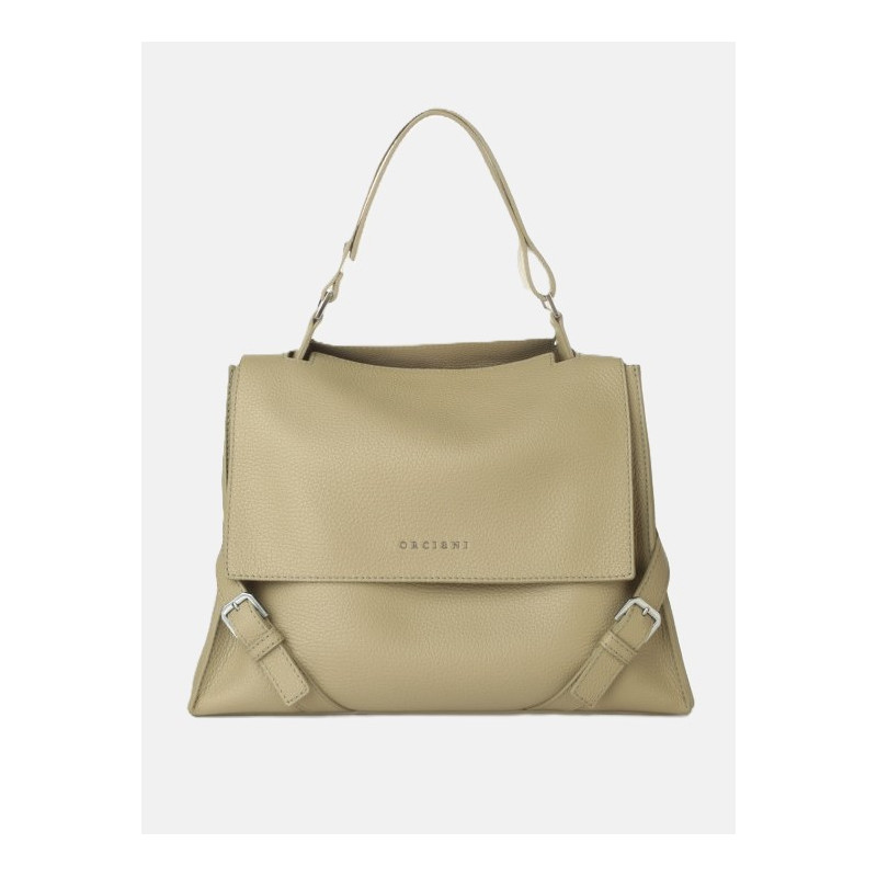 Borsa Sveva Sense media a braccio, spalla e tracolla. Tre tasche interne di cui una con zip. Chiusura a patta con bottone magnetico. Finiture in palladio. Nuovo dettaglio: cinturino esterno. Made in Italy
