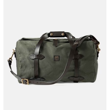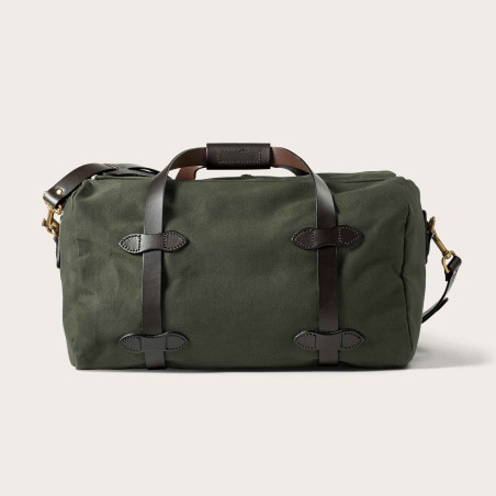 FILSON - Il borsone da viaggio DUFFLE è realizzato in Rugged Twill, resistente all'abrasione e impermeabile permette di mantere gli oggetti di valore all'asciutto. Manici e dettagli in pelle di vitello premium Italiana. Tracolla regolabile e rimovibile in pelle premuim Italiana. Cerniera in ottone antiruggini. Made in Italy