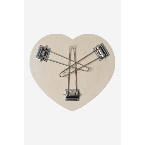 L’Heart Folding Table è realizzato in multistrato di betulla a forma del nostro iconico motivo a cuore ed è caratterizzato da una stampa grafica sulla superficie. Il piano del tavolo poggia su gambe pieghevoli in ferro.