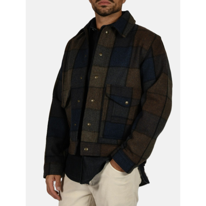 La nostra giacca da lavoro in lana Mackinaw presenta un taglio snello lungo fino ai fianchi, che evita la risalita del capo quando si è seduti e facilita l’accesso alle tasche o a un’eventuale cintura degli attrezzi. I bottoni a pressione personalizzati, pressoché indistruttibili e proposti sulla parte anteriore del capo e sui polsini regolabili, possono essere aperti o chiusi facilmente anche indossando dei guanti. Le tasche scaldamani sono posizionate dietro le tasche cargo con patta e bottone a pressione. All’esterno, sulla parte sinistra, la giacca è dotata di una tasca a più strati per riporre gli accessori, mentre l’interno presenta una tasca portaoggetti aperta.