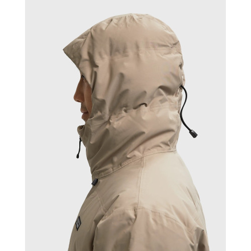 - Un cappuccio isolato e cucito con coulisse nascosta e polsini interni a costine tiene fuori il freddo