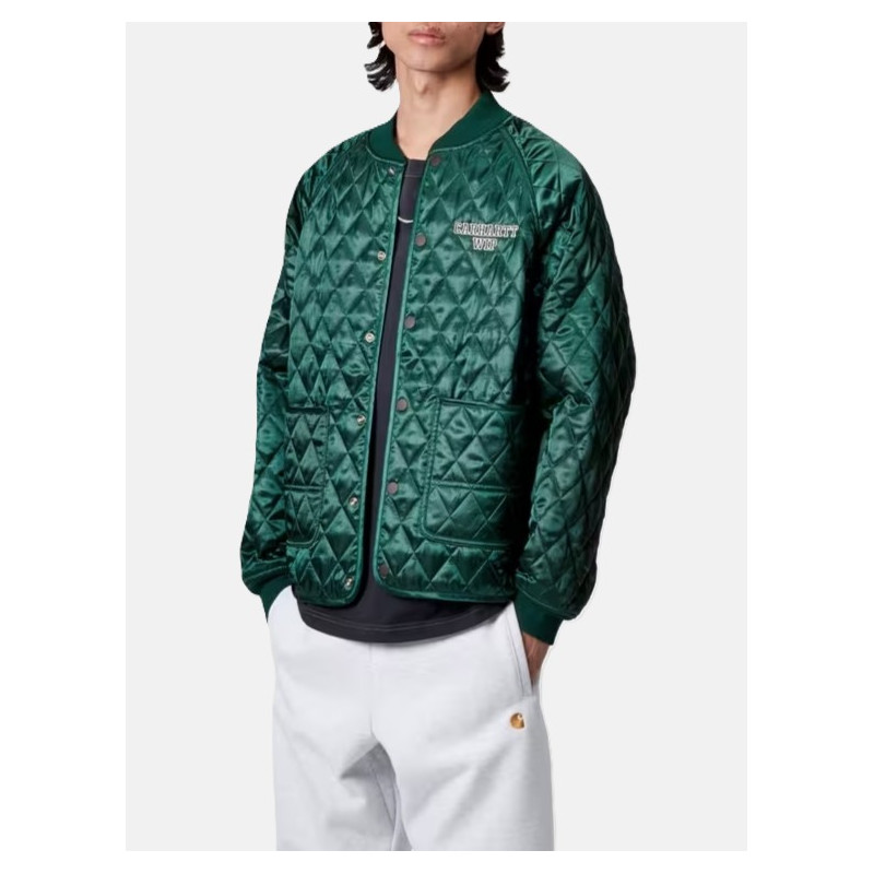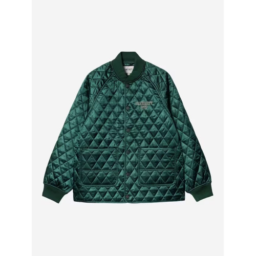 La Alumni Liner è realizzata in raso di poliestere matelassé, con colletto e polsini in maglia a coste. Sul davanti è dotata di due tasche applicate. Sul petto campeggia un ricamo grafico. Chiusura anteriore con bottoni automatici. Colletto e polsini in maglia a coste. Maniche raglan.
