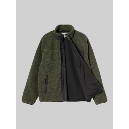 La Prentis Liner è realizzata in pile pesante 10,03 once e presenta dettagli in taffetà di nylon a contrasto e un solo taschino sul petto con etichetta Carhartt WIP. È inoltre caratterizzata da imbottitura a rete per una buona traspirabilità. Chiusura anteriore, tasche laterali e taschino sul petto con zip.
