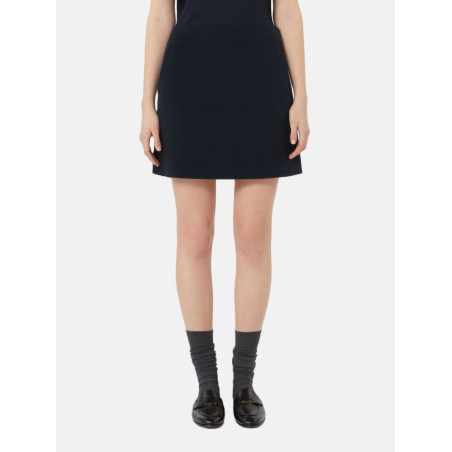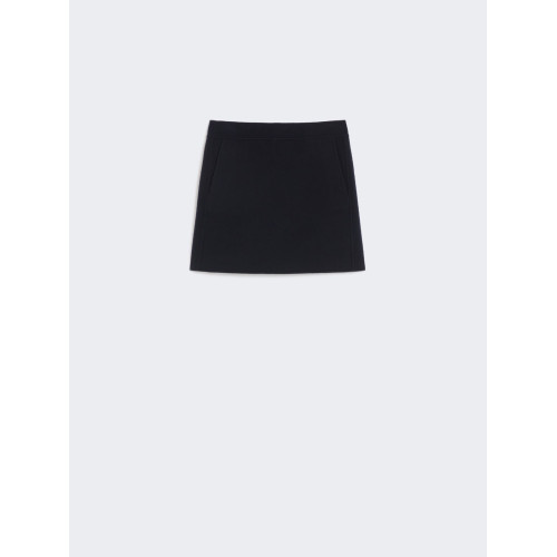 Gonna corta a tubino in doppio drap di lana. Vita regolare e linea leggermente svasata. Zip invisibile sul dietro e tasche.