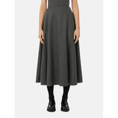 Gonna a ruota in flanella di lana stretch. Chiusura con zip sul dietro e tasche laterali. Vita regolare.