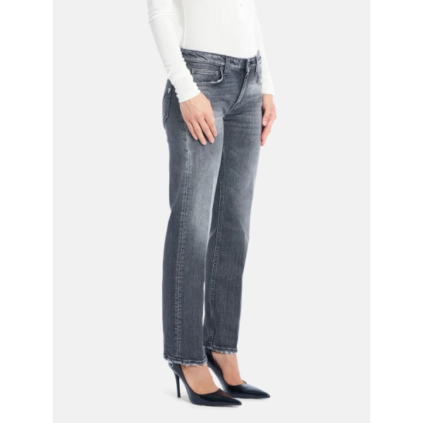 Jeans Coco cinque tasche slim fit, vita regolare, alto risvolto non fisso sul fondo. Denim stretch comfort nero 14 oz. Lavaggio nero vintage con rotture. Logo Dondup. Made in Italy