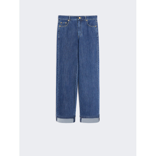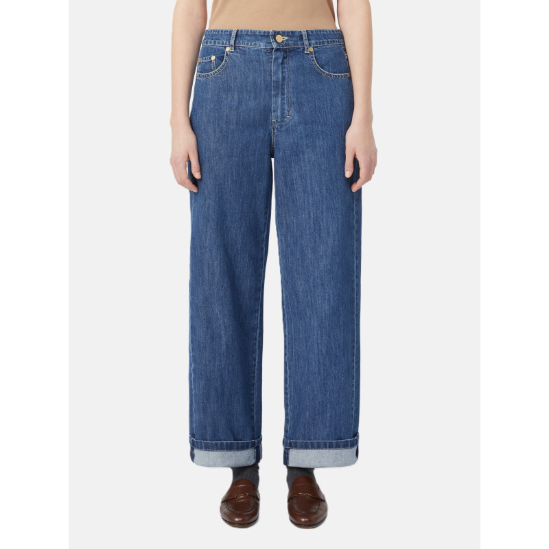 jeans 5 tasche a gamba dritta con risvolto. Vita regolare con passanti e chiusura con zip.