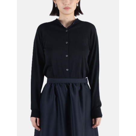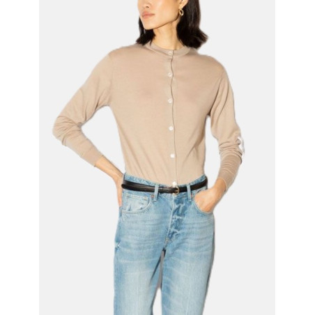 Il cardigan Merion presenta una scollatura rotonda e una chiusura con bottoni. Realizzato in finissima garza Anglo Indian Gauze di John Smedley calibro 30, è rifinito con polsini e orlo a costine. La garza Anglo Indian Gauze è una fibra mista 54% merino e 46% cotone, introdotta per la prima volta nel marchio John Smedley nel 1800 dallo stesso fondatore. La fibra offre vantaggi trans-stagionali a chi la indossa, combinando i vantaggi sia della lana merino che del cotone.
