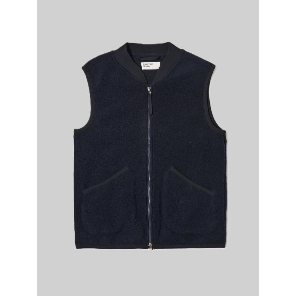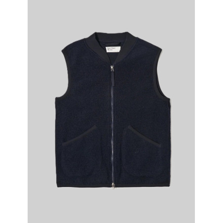 UNIVERSAL WORKS - Gilet in pile di lana, vestibilità regolare, cerniera bidirezionale, due tasche inferiori applicate, rilegatura in jersey