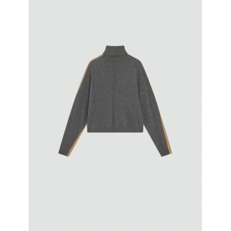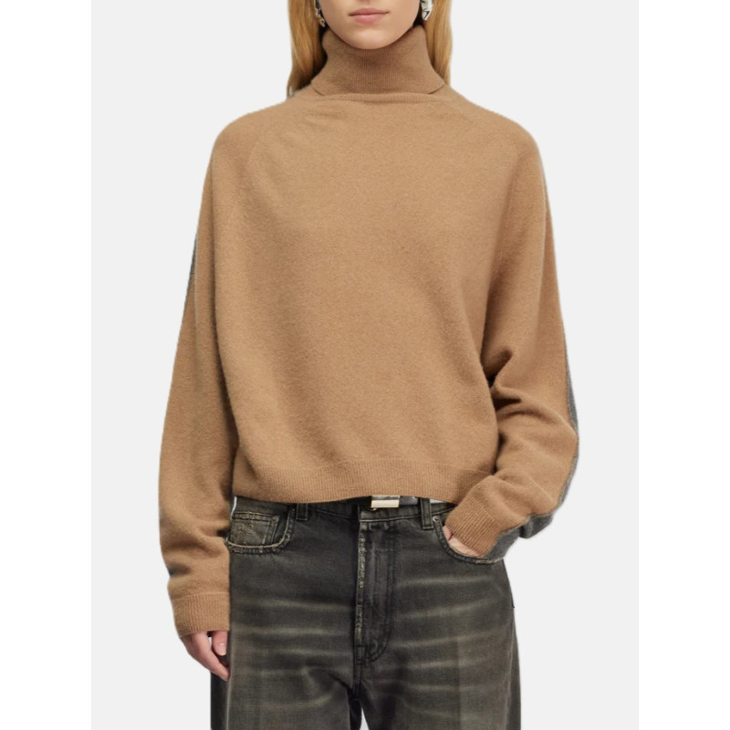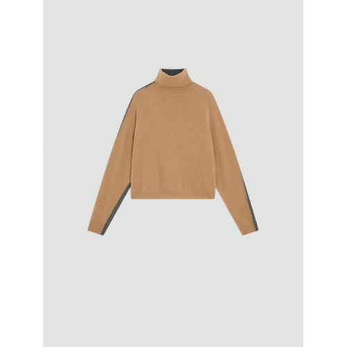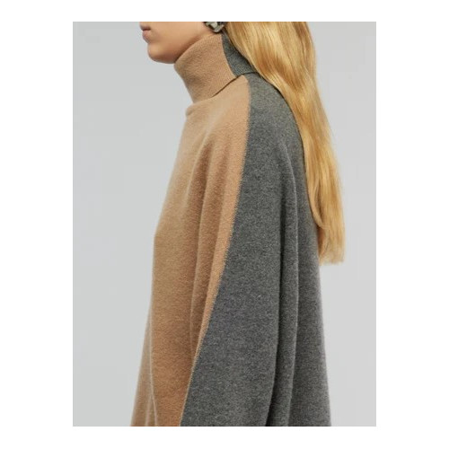 Dolcevita in cashwool bi-color. Manica raglan, cuciture a vista, collo e polsi a costina. Modello boxy fit. Lunghezza vita.