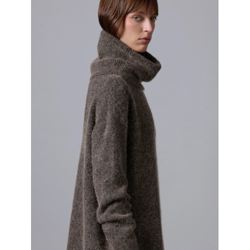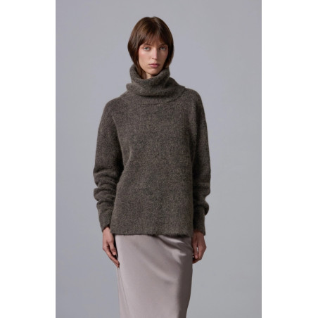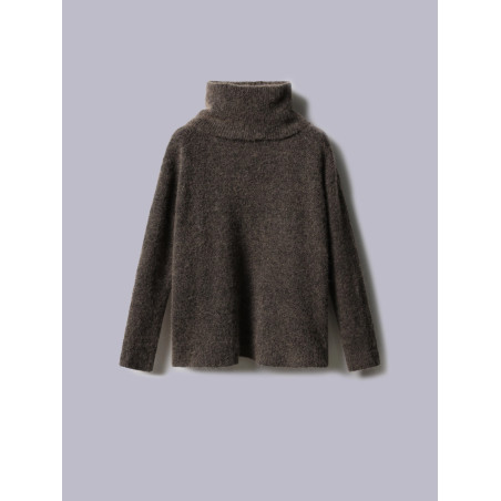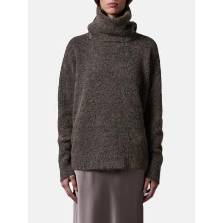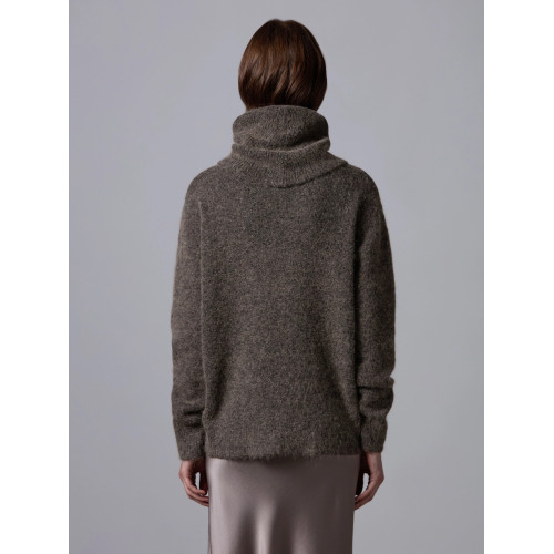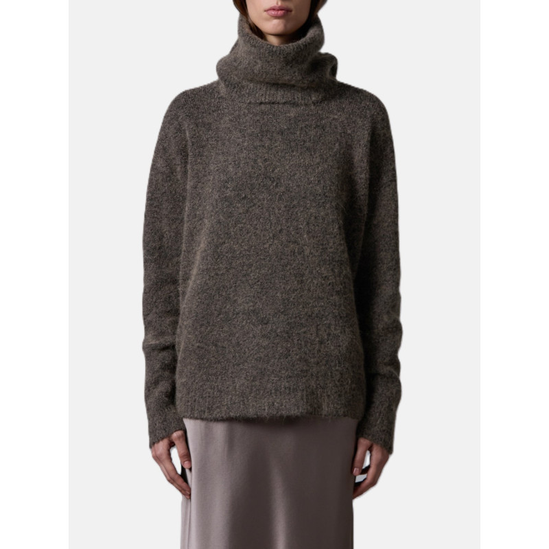 Dolcevita dalla vestibilità over realizzato in un morbido mix di alpaca, cotone e altre fibre. Il capo è caratterizzato da spalle scese ed è reso particolare da un collo alto ampio e risvoltato. Rifinito con bordi a costine.