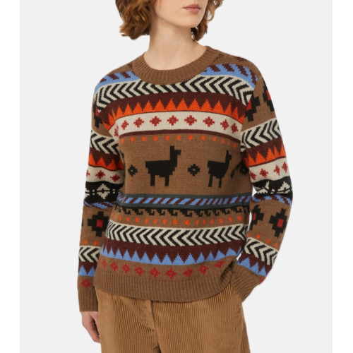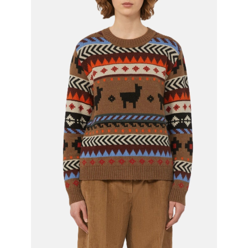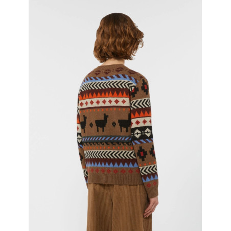 Maglia girocollo in filato di alpaca e lana a lavorazione jacquard all over. Manica a giro e bordi rifiniti a costina. Veste regolare
