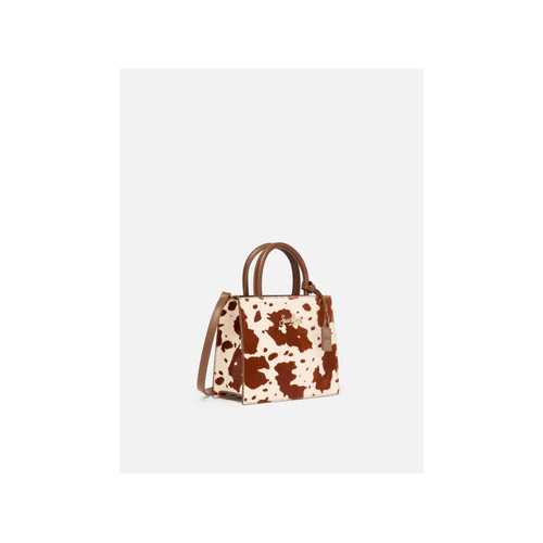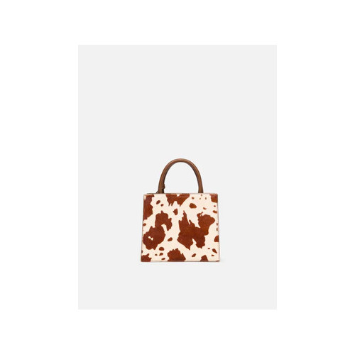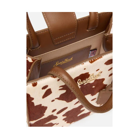 La Micro Shop Bag Micro è realizzata in cavallino con stampa vachet. Pelle spazzolata e cavallino. Tracolla removibile e regolabile. Placchetta logo