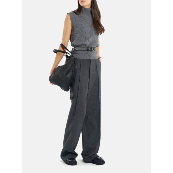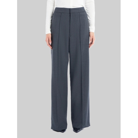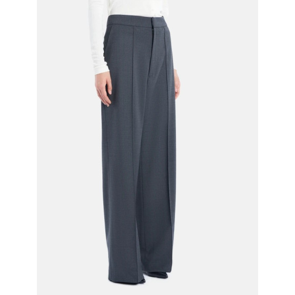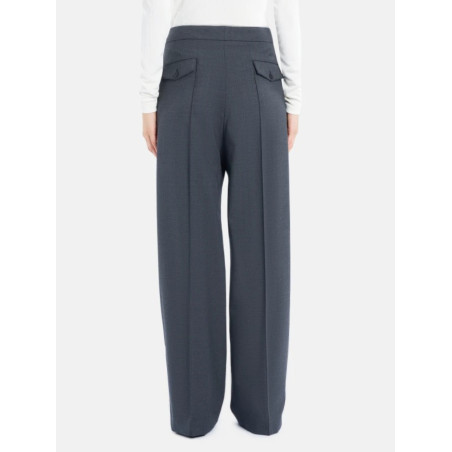 Pantalone Penni wide leg chino, vita bassa, nervatura davanti e dietro, tasche posteriori con pattine. Gabardina di lana stretch. Logo Dondup. Made in Italy