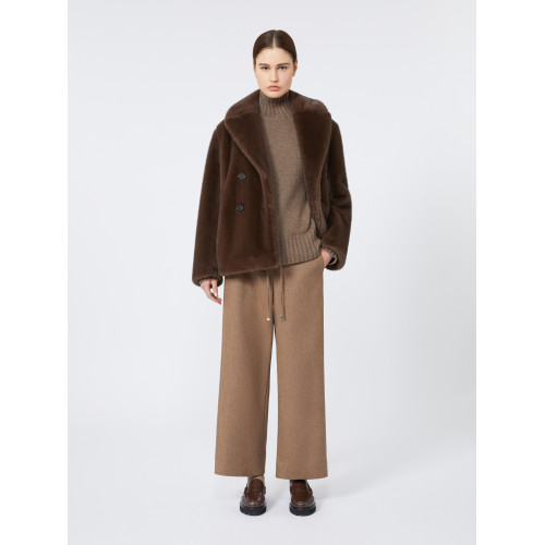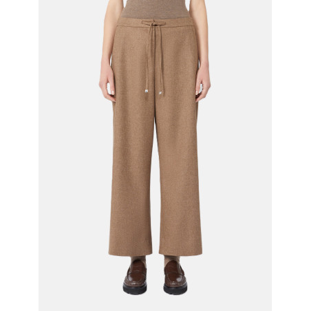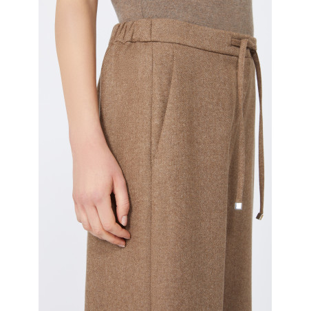Pantalone jogging in flanella di lana stretch a fantasia pied de poule. Caratterizzato da una silhouette con gamba morbida. Chiusura con zip nascosta e gancetto. Tasche alla francese.
