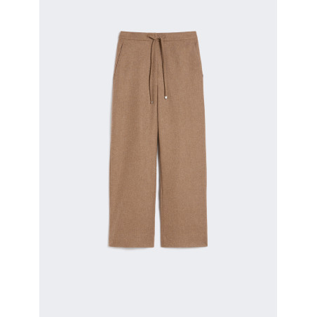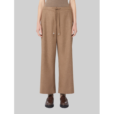 Pantalone jogging in flanella di lana stretch a fantasia pied de poule. Caratterizzato da una silhouette con gamba morbida. Chiusura con zip nascosta e gancetto. Tasche alla francese.